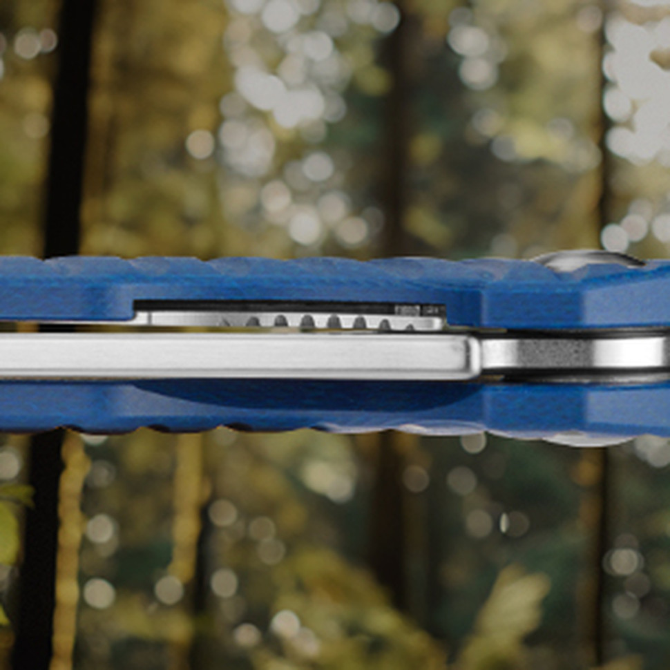 Лезо виготовлене з нержавіючої сталі Sandvik 14C28N виробництва Швеції. Сплав характеризується міцністю, що зводить до мінімуму ризик появи пошкоджень на кромці під час високого навантаження. До того ж твердість на рівні 57-59 HRC у поєднанні з тривалим утриманням гостроти дозволяє забути про часте гостріння леза.