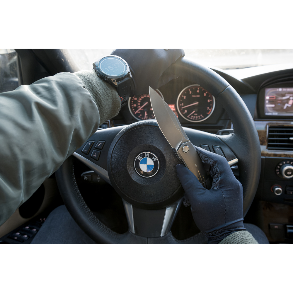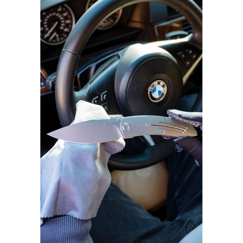 Ще одна перевага ножа Weknife Sine Wave — миттєве відкривання за рахунок закритих керамічних підшипників в осьовому вузлі. Щоб дістати лезо з руківʼя, потрібно натиснути на ледь помітний плавець фліпера, після чого клинок фіксується в робочому положенні за допомогою запірного механізму Nested Liner Lock.