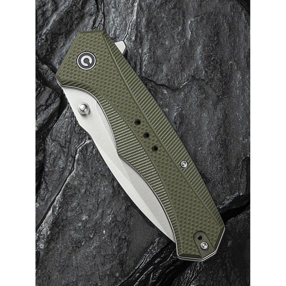Civivi Photonix має ще одну корисну особливість — можливість відкривання однією рукою кількома способами. Достатньо натиснути пальцем на плавець фліпера або шпеник, щоб ніж відкрився та зафіксувався у відкритому положенні за допомогою замка Liner Lock.