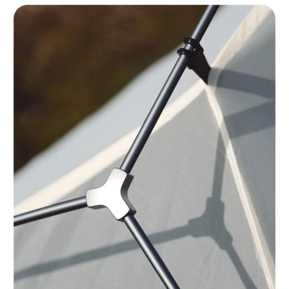 Каркас намету складається з алюмінієвих дуг Ø8.5, які несприйнятливі до іржі та витримують високі навантаження завдяки гнучкості. У конструкції передбачений 1 вхід та вентиляційне віконце.