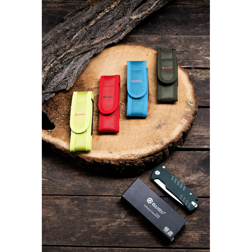 Чохол пошитий з нейлону-матеріалу, відомого міцністю і стійкістю ниток до стирання. Він відмінно переносить ті умови, що характерні для туристичних походів та інших видів активного відпочинку на природі. Розмір чохла по довжині легко регулюється завдяки тому, що застібається він на липучку. Бічні сторони чохла виконані з більш тонкої стропи, а знизу є невеликий відкриту ділянку, в який можна протягнути темляк ножа або ланцюжок для додаткової фіксації ножа, наприклад, на лямці рюкзака. Можливість перенесення інструменту на ремені пояса передбачена і у самого чохла. Ззаду на ньому є спеціальна лямка, пристібається до основи за допомогою кнопки. Таким чином, ніж в чохлі легко повісити на ремінь або зняти, коли це буде потрібно. Крім того, є металеве кільце, за яке чохол також можна підвісити. Загальний розмір чохла становить 23,2 см, але в закритому вигляді він зменшується до 15,2 см.втім, довжину закритого Knife bag можна регулювати, адже він застібається за допомогою широкої липучки. Ширина даного аксесуара становить 3 см.
