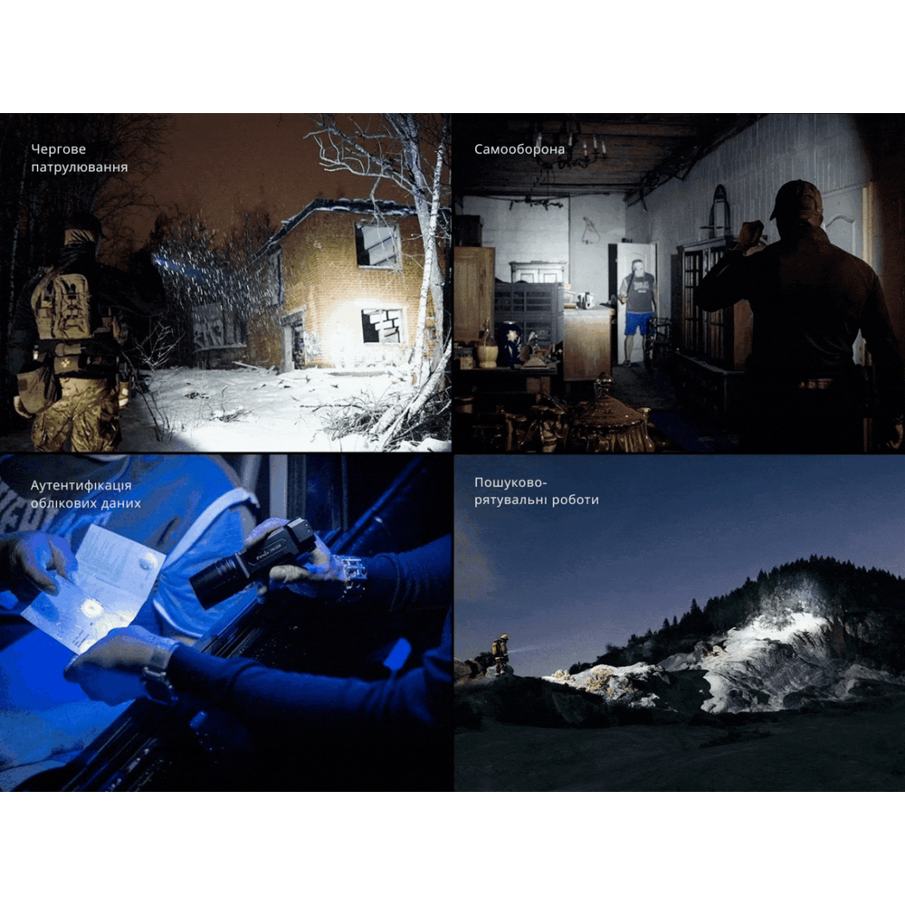 Зверніть увагу! Час роботи в режимі Спалах вказана як сума тривалості роботи на режимах з меншою яскравістю. На них система перемикається автоматично, коли ліхтар нагрівається до критичного рівня та спрацьовує захист від перегрівання.