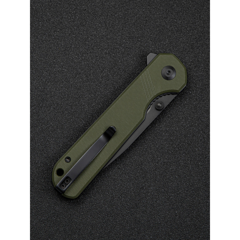Ніж оснащений сталевою кліпсою (Tip-Up). Її можна встановлювати під праву або ліву руку. Затискач передбачає приховане носіння у кишені. У хвостовій частині є отвір для темляка.