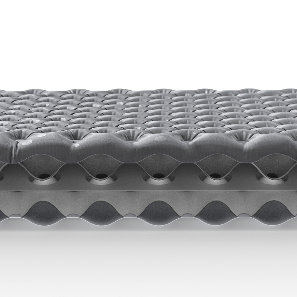 Матрац має овальну форму для рівномірного розподілу ваги. Цьому також сприяють рельєфна поверхня та множинні дрібні камери, які при наповненні повітрям забезпечують якісну підтримку тіла та повне розслаблення м'язів.