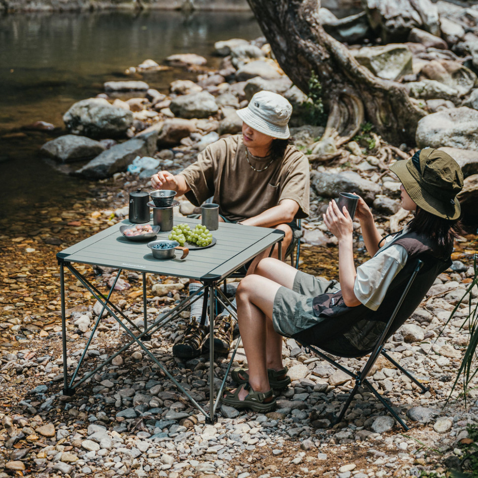 Матеріал стола — багатошаровий алюмінієвий сплав 6063. Метал стійкий до корозії, не боїться вологи та легко очищається від забруднень. Він також демонструє високу гнучкість і твердість, завдяки чому конструкція витримує навантаження до 90 кг.