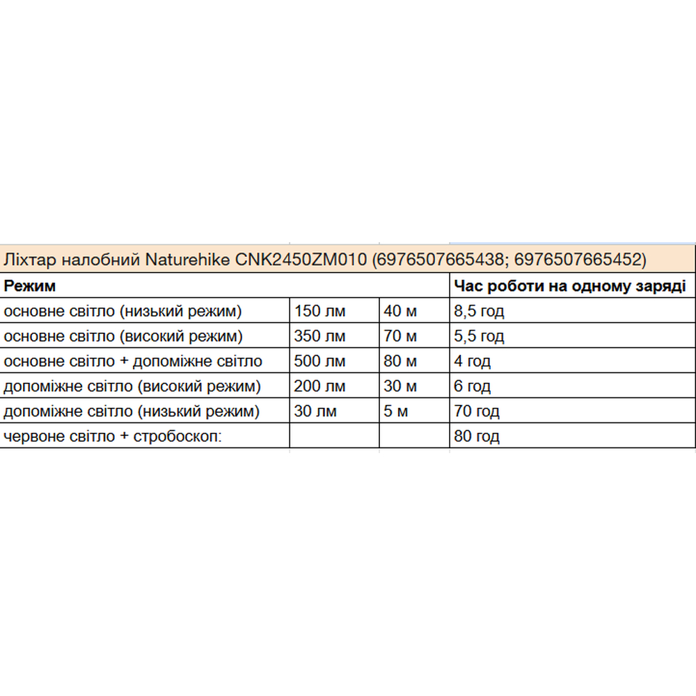 Інші особливості налобного ліхтаря Naturehike CNK2450ZM010: