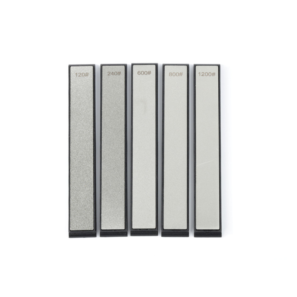 Зернистість каменя сягає 1200 грит. Абразив забезпечує делікатне базове заточування та шліфування, усуваючи дрібні задирки та нерівності на різальній кромці.