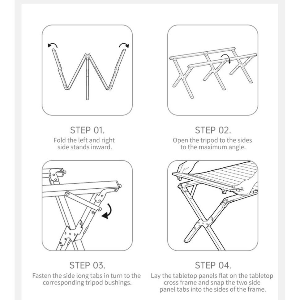 Встановлення є дуже простим: розкладіть каркас і зафіксуйте стільницю зверху. Цей процес займає буквально пару хвилин і не потребує наявності додаткових інструментів.