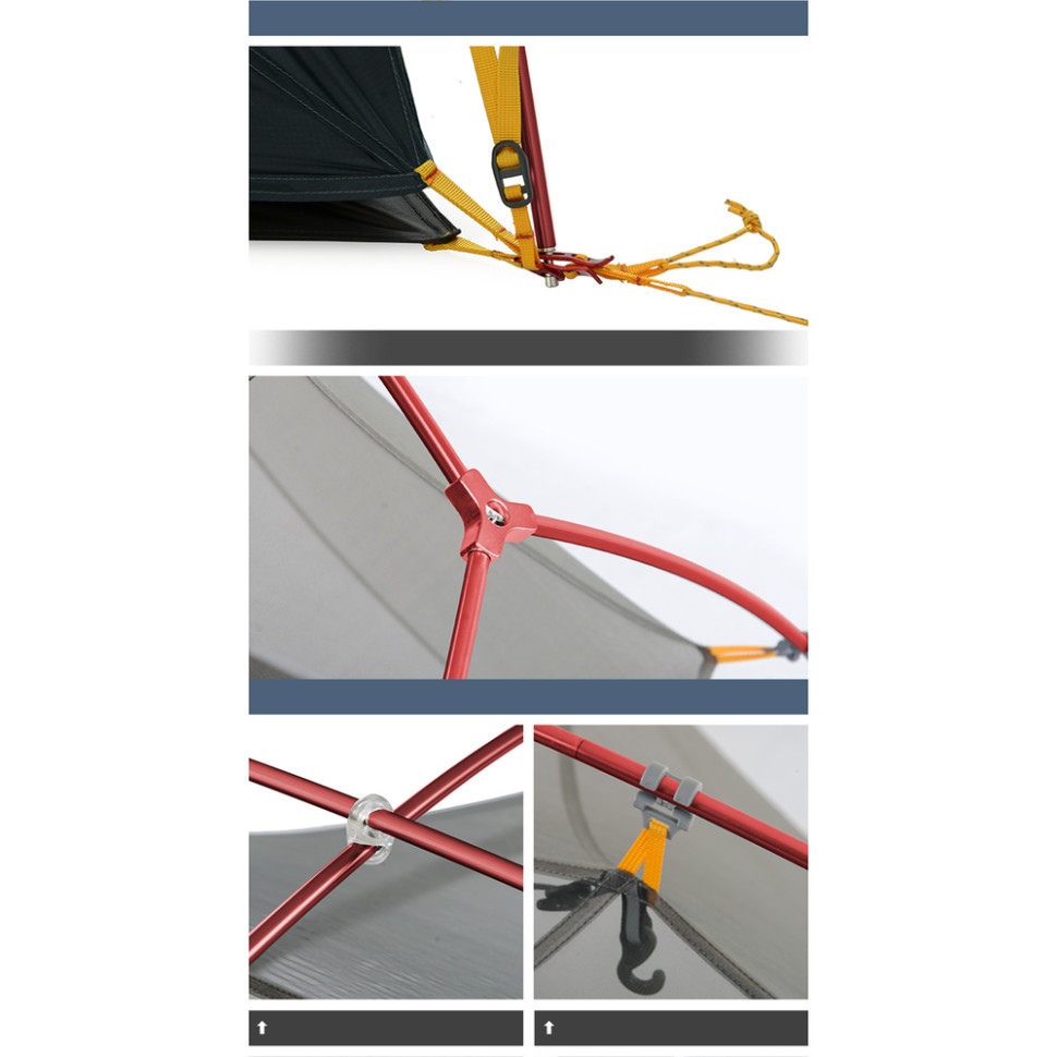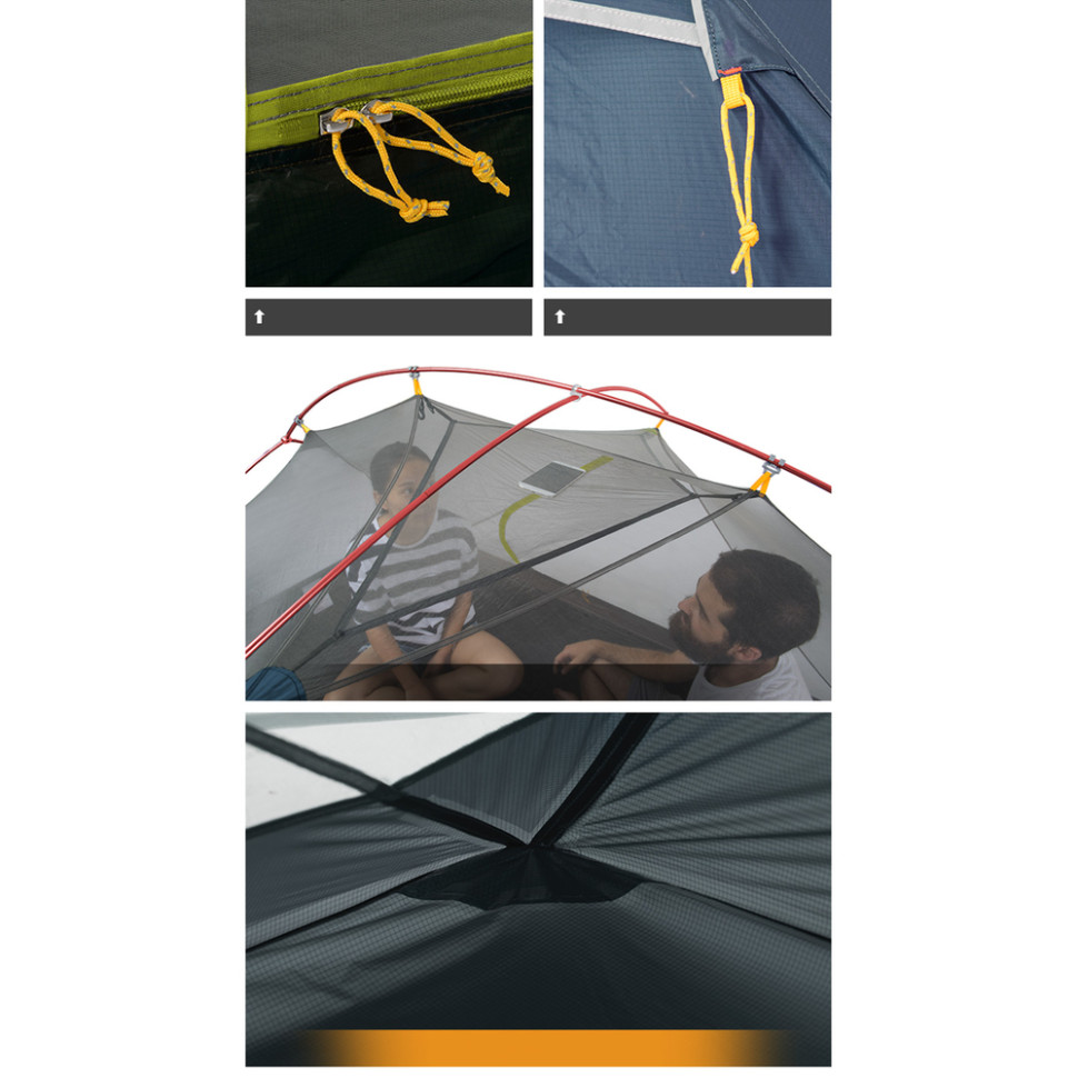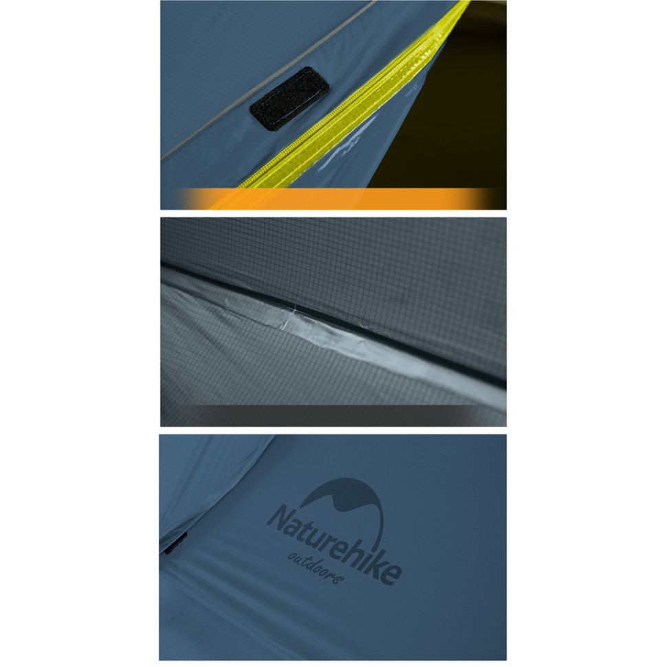 Конструкція намету Naturehike Mongar складається з 2 окремих частин: внутрішнього намету з сіткою та зовнішнього тенту, стійкого до дощу, вітру та сонця. У теплу пору року можна використовувати лише внутрішню частину — спати під зоряним небом та насолоджуватися прохолодою. Тент за необхідності перетворюється на окремий навіс, коли потрібно організувати тінь або укриття для відпочинку.
