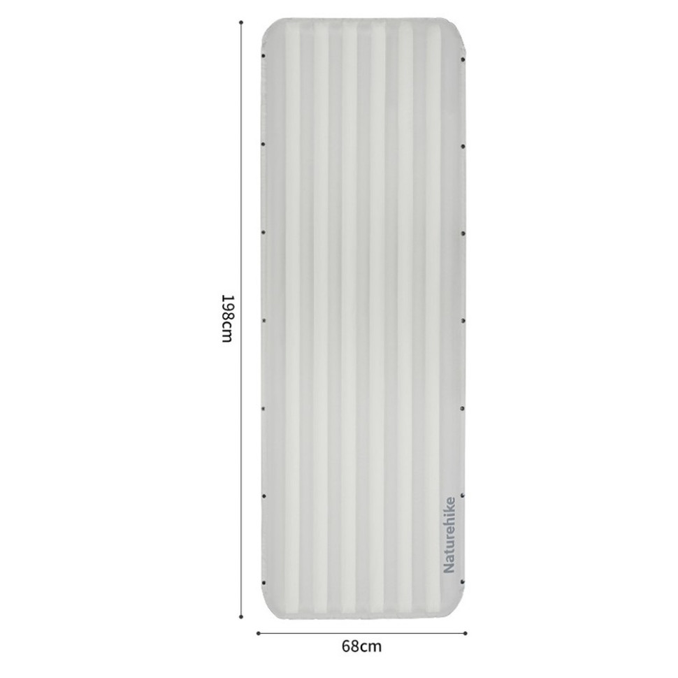 Матрац Naturehike CNK2450WS035 дозволяє відпочивати з комфортом, де б ви не знаходилися — у кемпінгу, на пляжі або дачі. Модель надувається до 198 х 68 см і витримує навантаження до 150 кг, пропонуючи достатньо простору для сну однієї людини у будь-якій зручній позі. Бажаєте збільшити місце — просто обʼєднайте два аналогічні вироби в один за допомогою бічних кнопок.