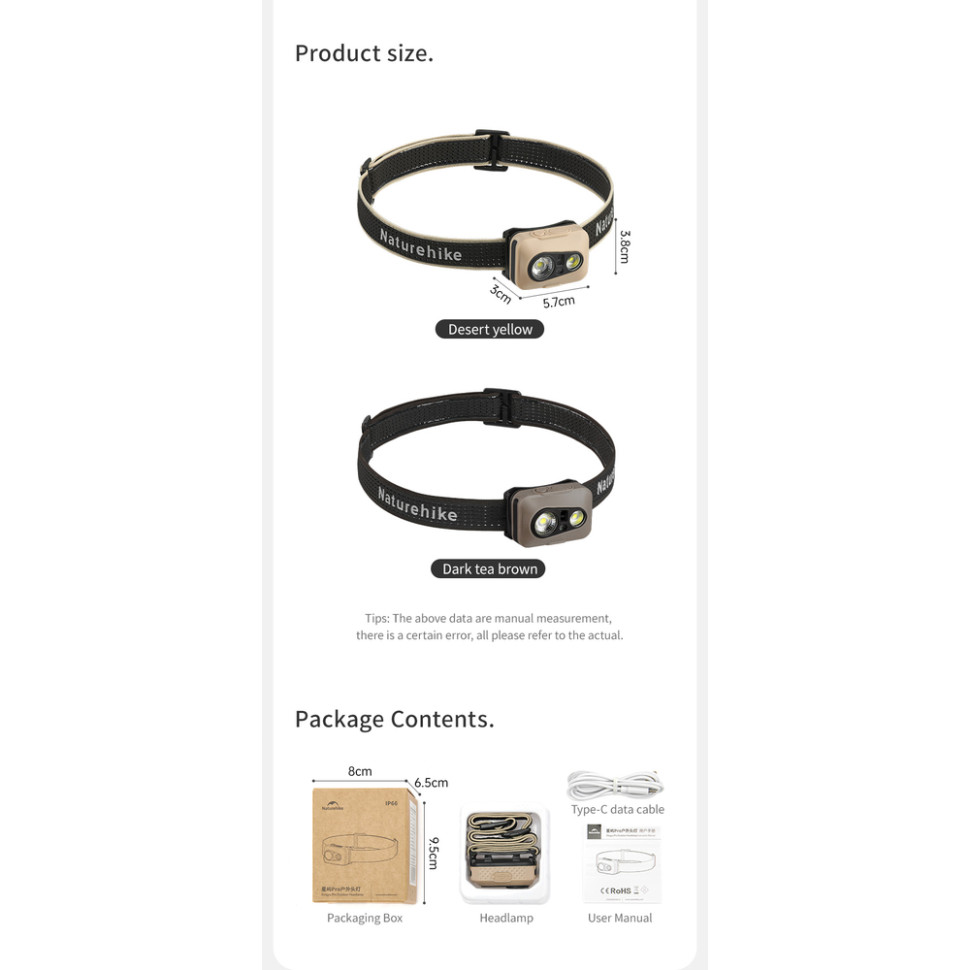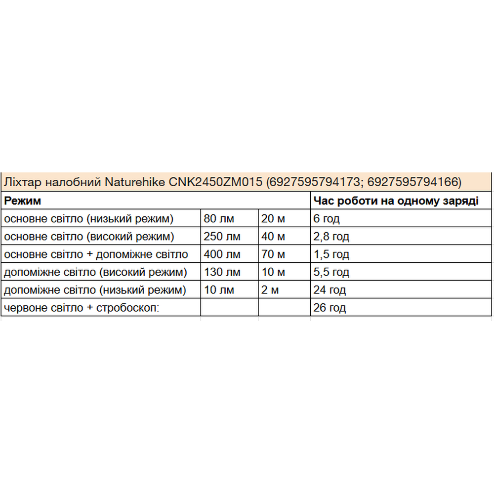 Ліхтар Naturehike CNK2450ZM015 з налобною резинкою, зарядний кабель Type-C, інструкція користувача.