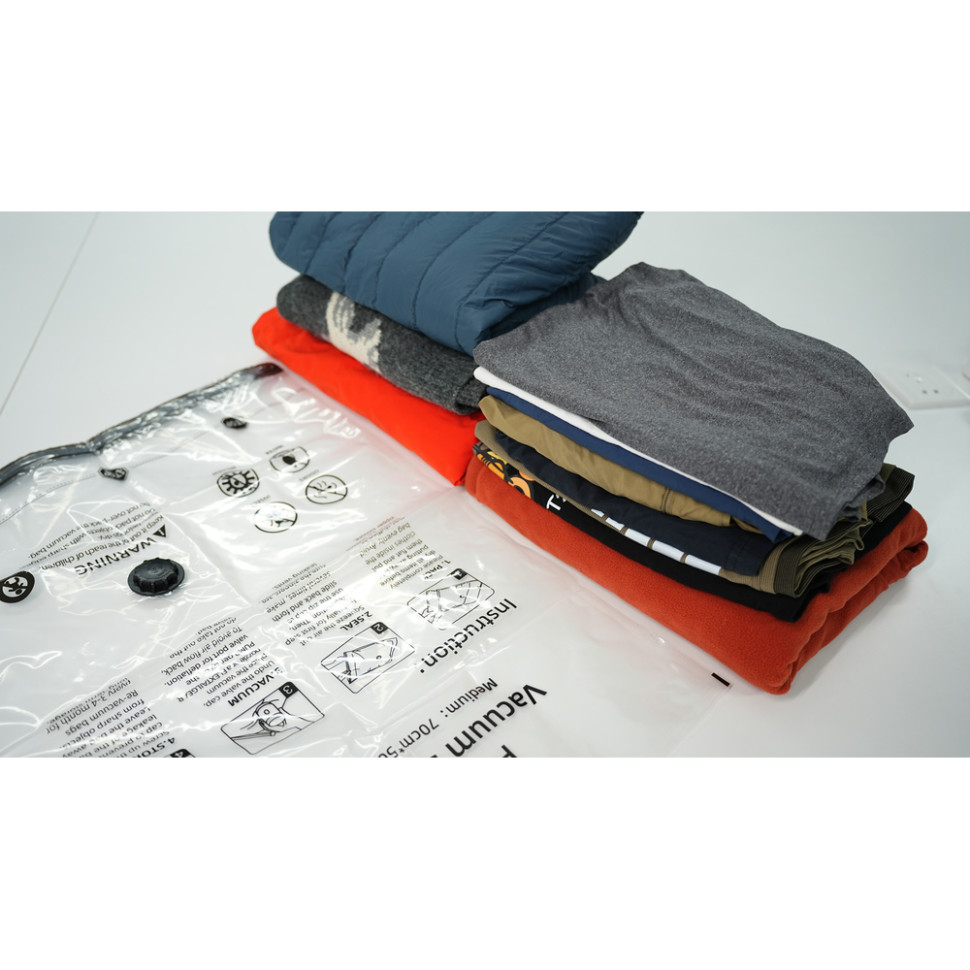 Вакуумний пакет Flextail допомагає компактно упакувати сезонний одяг, білизну та текстиль для зручного зберігання у шафі, на полиці або для перевезення у дорожній валізі.
