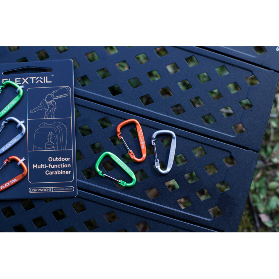 Набір карабінів Flextail — це практичний комплект кріплень для туризму, кемпінгу та організації спорядження. Вони допомагають швидко підвісити та зафіксувати все, що має бути під рукою: кріплять підсумки та аксесуари до рюкзака та системи MOLLE, фіксують спорядження у наметі, дозволяють організувати простір у кемп-кухні. Колірне кодування полегшує сортування: можна виділити окремі карабіни під кухню, гігієну або ремнабір.