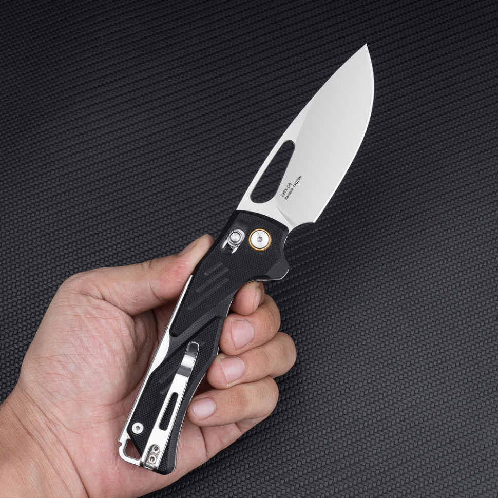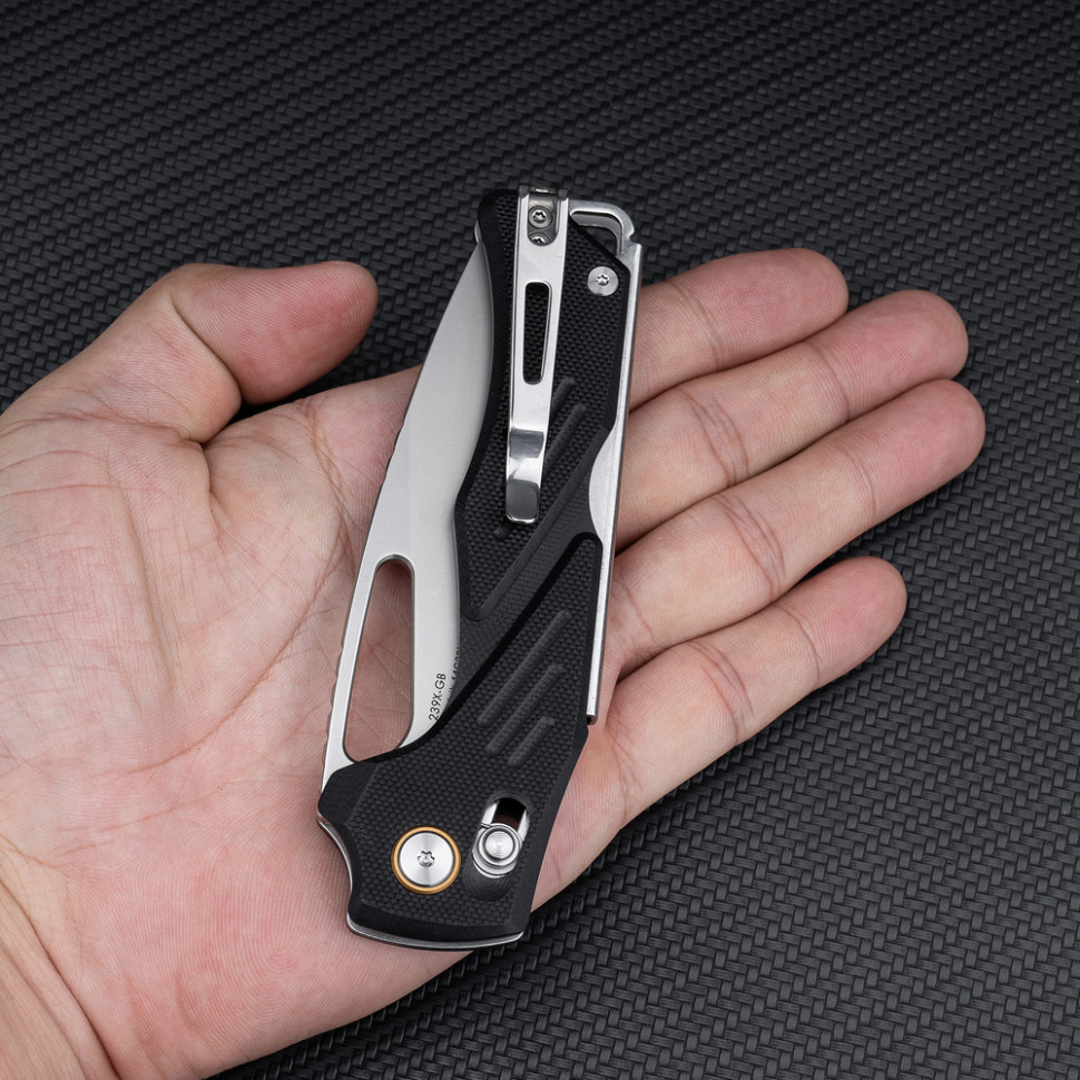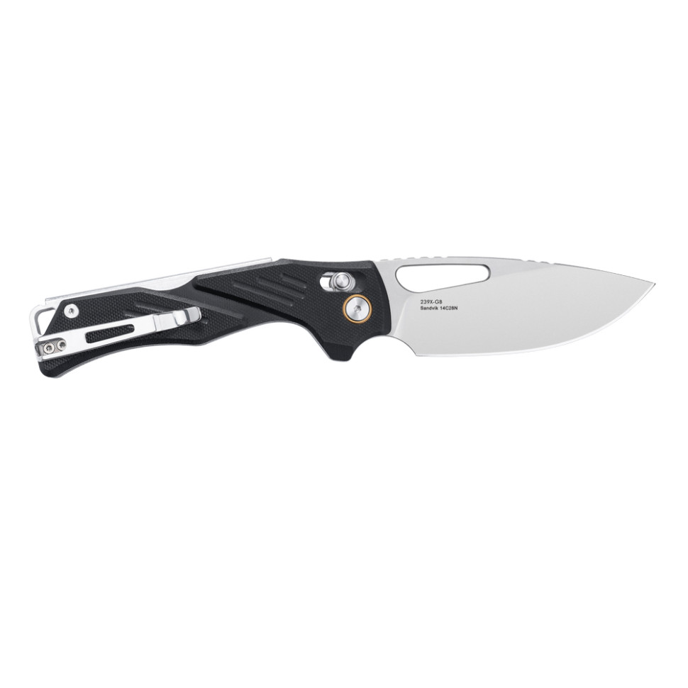 Повноформатний ніж Mirage 239X-GB зі складаним клинком позиціюється як мисливський інструмент, розрахований на активне різання щільних матеріалів та впевнену роботу в рукавичках. Модель також підходить для тактичних завдань, де потрібне особливо тверде та витривале лезо.