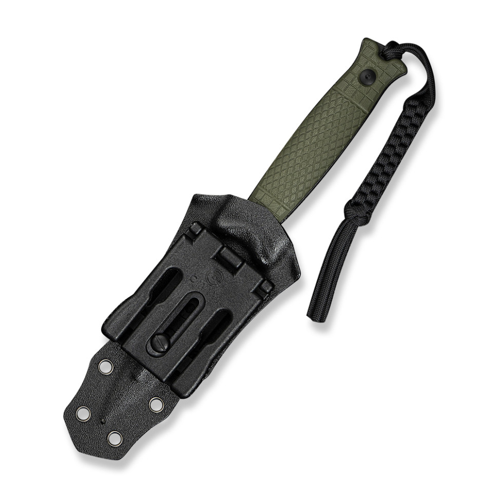 У хвостовій частині руківʼя закріплено паракорд, який допомагає швидше витягувати ножа з чохла.