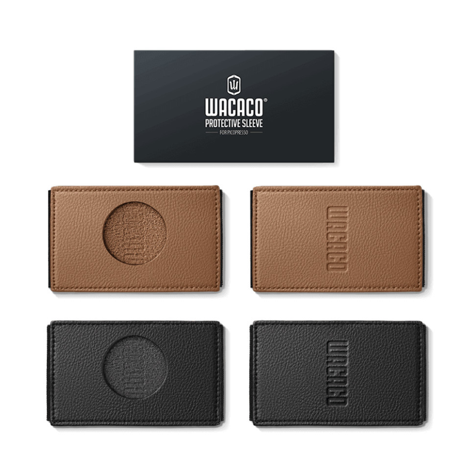 Комплект складається з двох чохлів: чорного та коричневого. Аксесуари розроблені спеціально під корпус кавоварки Wacaco Picopresso та захищають пристрій від подряпин і дрібних пошкоджень під час транспортування.