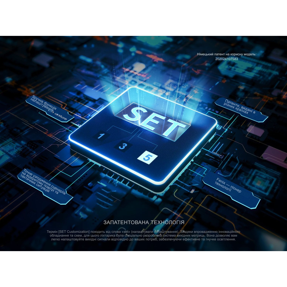 У ліхтарі передбачено захист від переполюсування та індикацію рівня заряду при ввімкненні. Цифрова стабілізація підтримує постійний світловий потік незалежно від кількості заряду в елементі, а низьковольтне попередження вчасно сигналізує про необхідність заряджання.