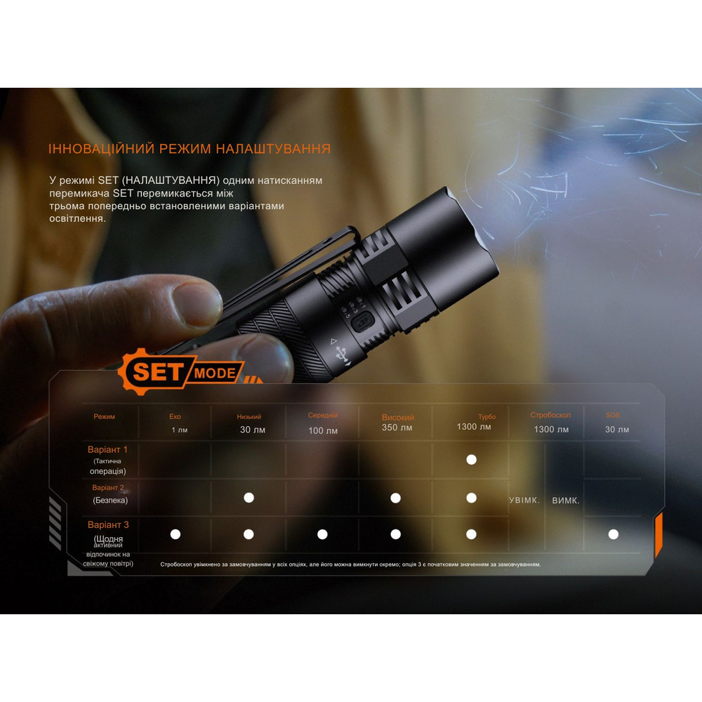 У PD26R ACE передбачено 7 режимів, включно з кількома миготливими виходами на екстрений випадок та Місячним світлом для м'якого підсвічування.