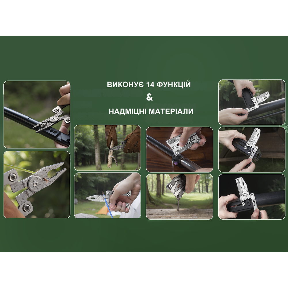 Конструкція розміром з банківську картку вміщує повноцінний набір інструментів з різними функціями — від різання та роботи з кріпленнями до експрес-ремонту під час подорожей.