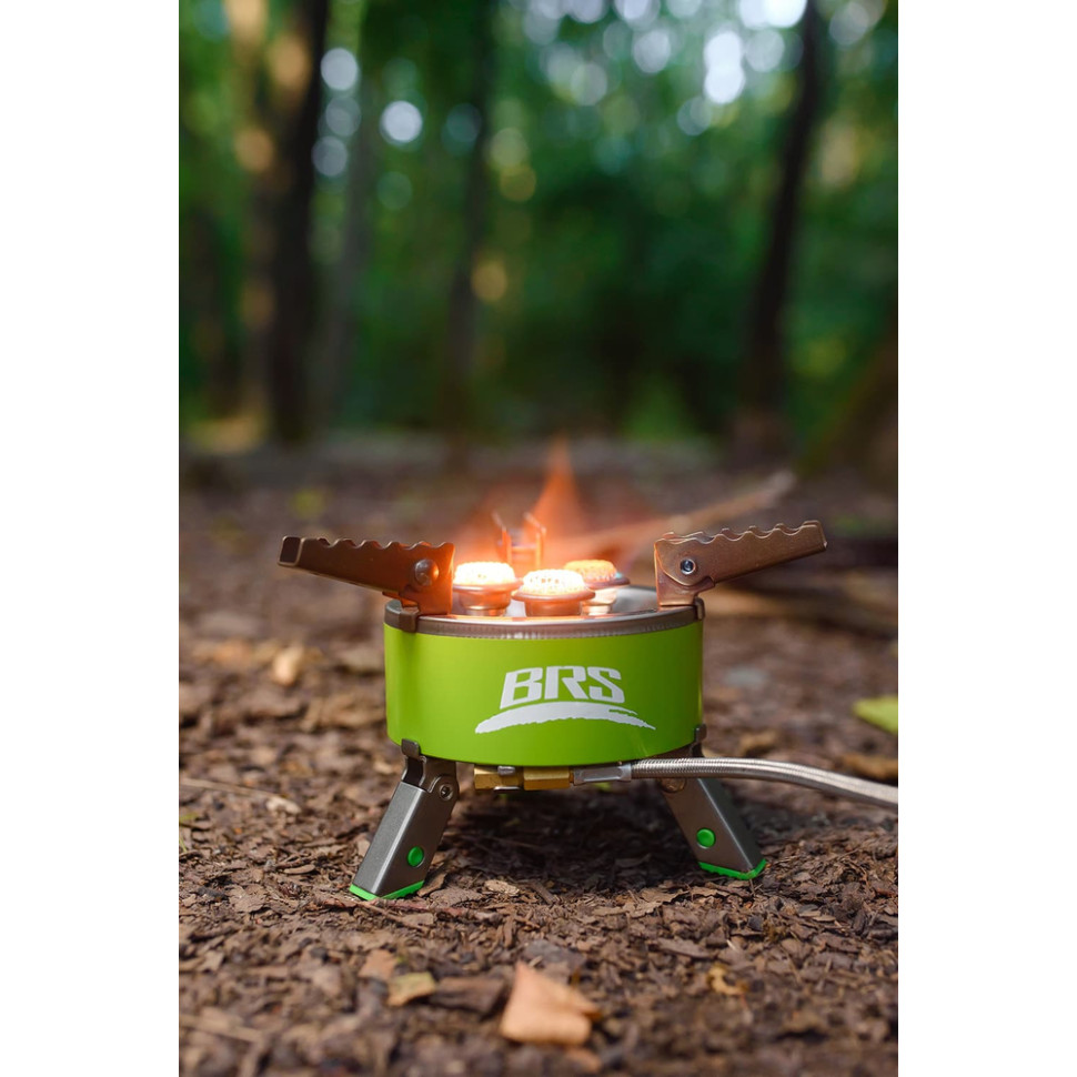 Триконфорковий пальник BRS-73 формує широкий, стабільний вогонь потужністю 4200 Вт. 1 л води закипає ~3 хв 50 с.