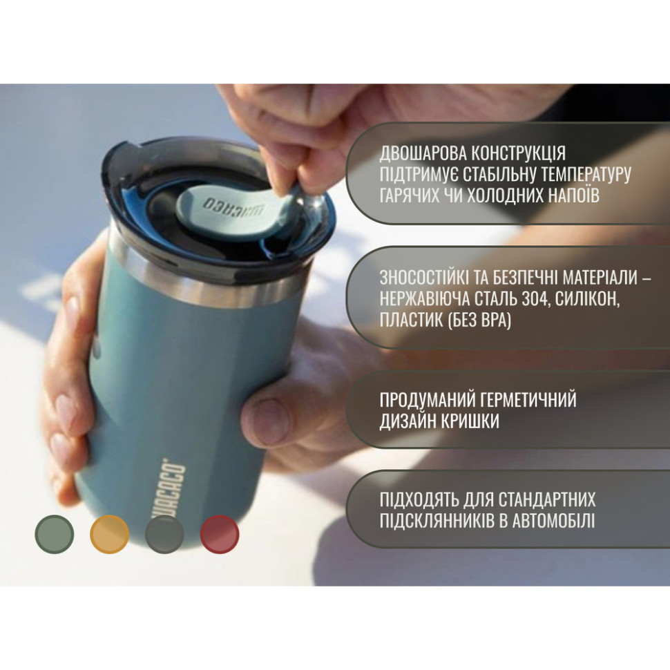 Розміри термокухля складають Ø81 мм х 150 мм, тому він сумісний з більшістю автомобільних підсклянників. Крім того, виріб не потребує спеціального догляду — достатньо сполоснути конструкцію під проточною водою, щоб очистити її від залишків напою.