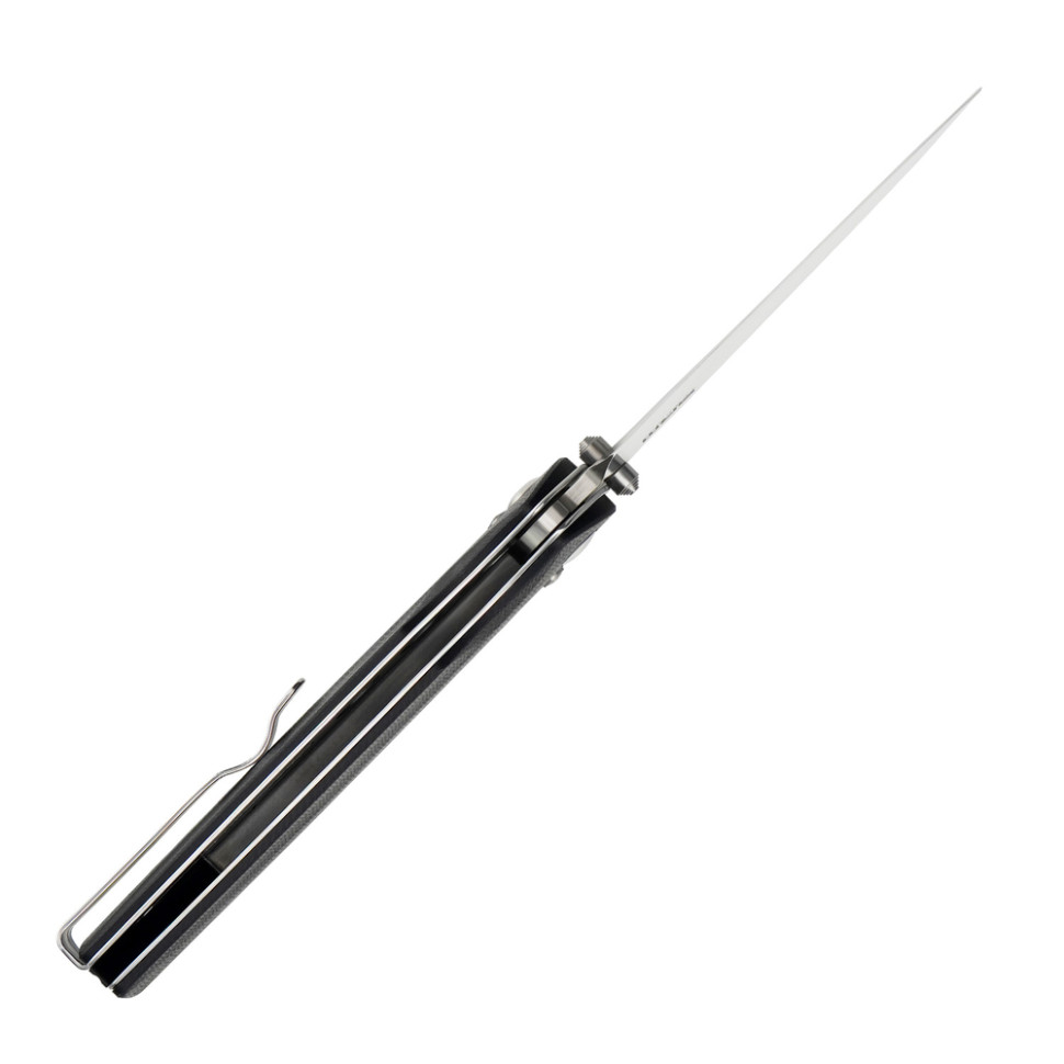 Відкривати ніж можна правою або лівою рукою завдяки двосторонньому шпенику. Осьовий вузол зібраний на керамічних підшипниках, завдяки чому хід клинка легкий і без заминок навіть при частому циклі «відкрити-закрити».