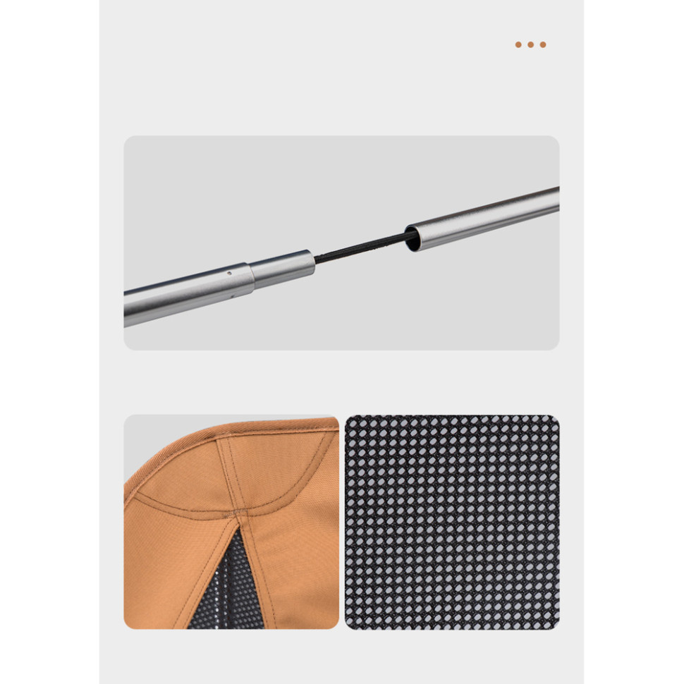 - Каркас із алюмінію. Каркас складається з алюмінієвих труб Ø15 мм, які з'єднані одна з одною за допомогою еластичної резинки, що запобігає втраті окремих елементів. Каркас витримує навантаження до 120 кг. До того ж алюміній не схильний до корозії, тому модель можна сміливо використовувати в умовах підвищеної вологості, наприклад, біля річки або на морі.