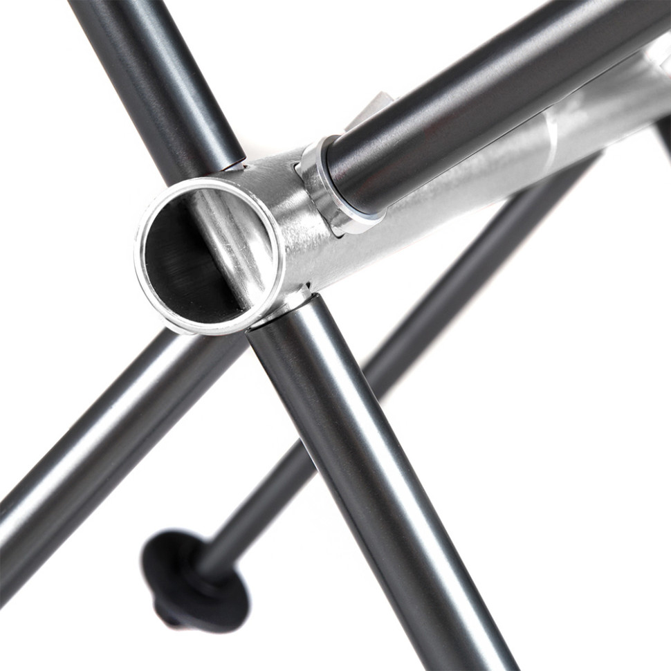 Сидіння з високою спинкою пошито з тканини Оксфорд ріп-стоп 600D, стійкої до розривів та появи зачіпок. Дизайн доповнений бічними вставками із сітки, яка покращує циркуляцію повітря в області спини та запобігає зайвому потовиділенню під час відпочинку спекотного дня.