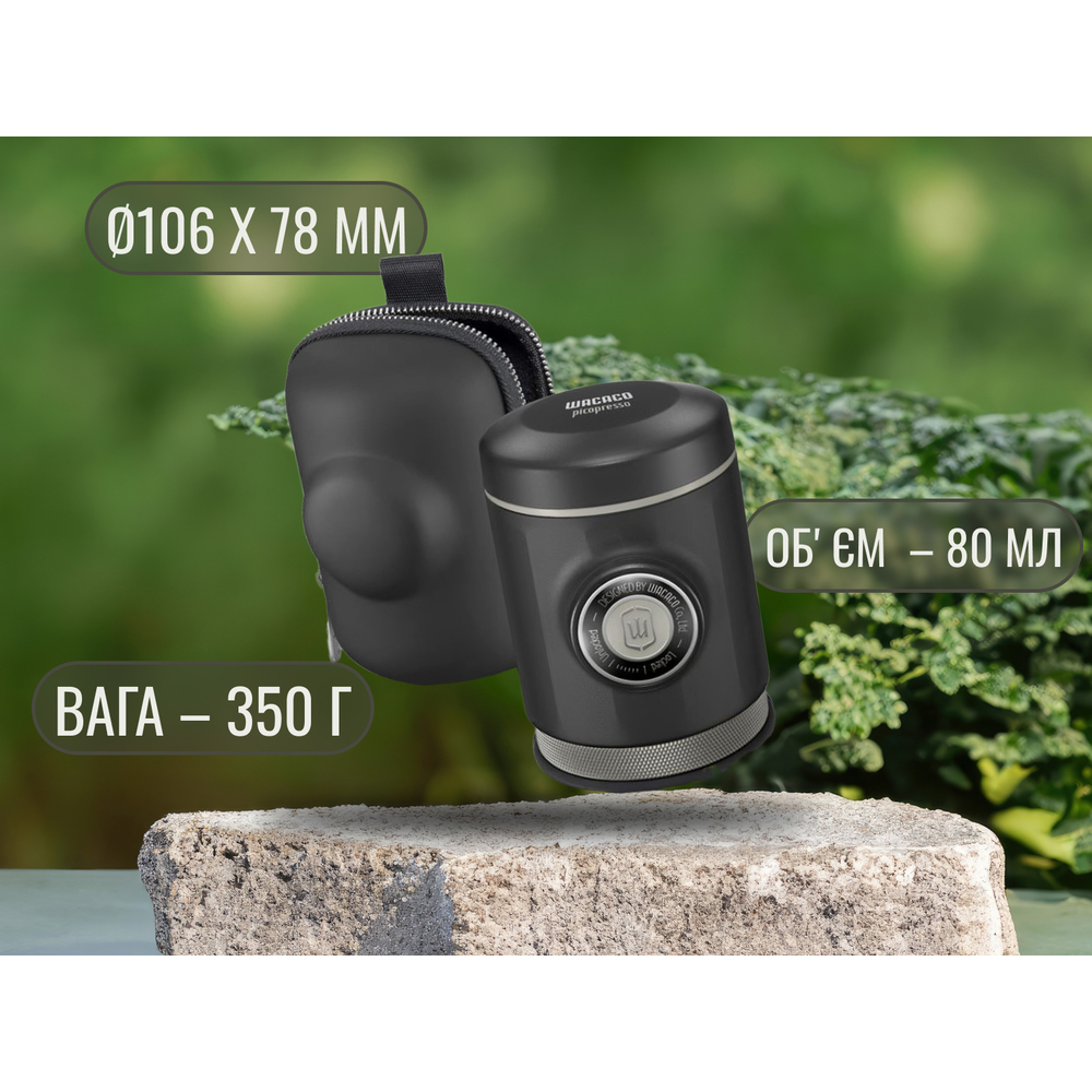 Готуйте еспресо в подорожі, на пікніку з друзями або в офісі, використовуючи Wacaco Picopresso — найменшу у світі кавоварку! Пристрій робить процес приготування напою швидким, зручним, а головне — якісним, порівнянним з ефективністю елітних кавомашин. З його допомогою ви можете насолоджуватися запашною кавою з насиченим смаком і бархатистою кремовою пінкою, де б ви не знаходилися!