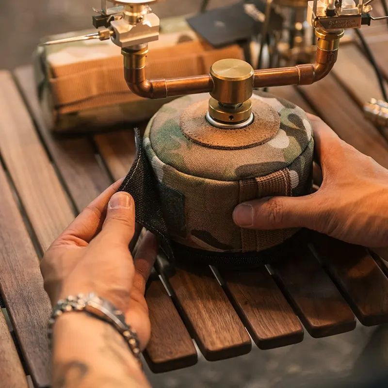 Чохол для газового балона. Можна застосовувати в туризмі, різних видах активного відпочинку. Чохол має камуфляжне забарвлення, є два варіанти розміру - на маленьку плоску банку ємністю 230 грам, а також на велику плоску банку ємністю 450 грам.