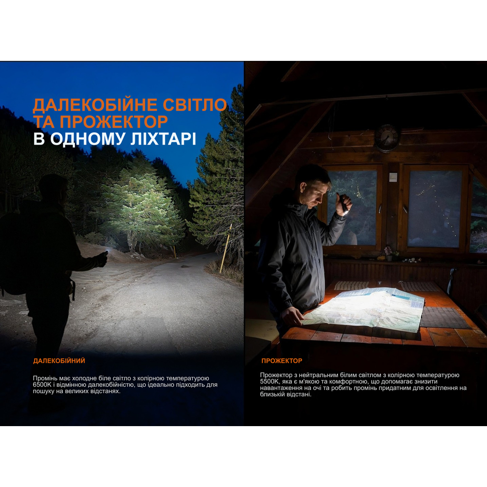 Зверніть увагу! Вбудовані системи захисту від перегріву та контролю напруги автоматично знижують яскравість при перегріванні внутрішньої електроніки або розряджанні акумулятора, щоб продовжити термін служби ліхтаря.