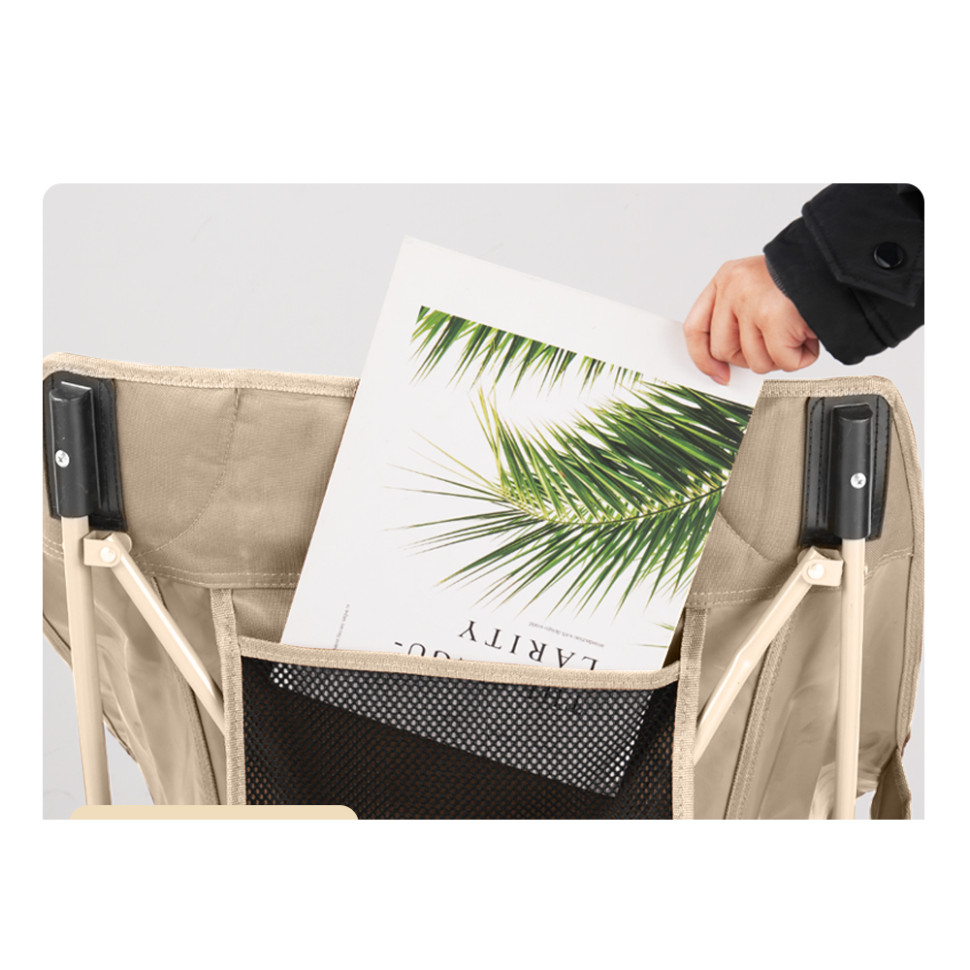 Збоку та в спинці є кишені для зберігання дрібних предметів, які хочеться тримати під рукою. На ніжках є нековзні насадки для стійкості конструкції у разі встановлення на піску або м'якому ґрунті.