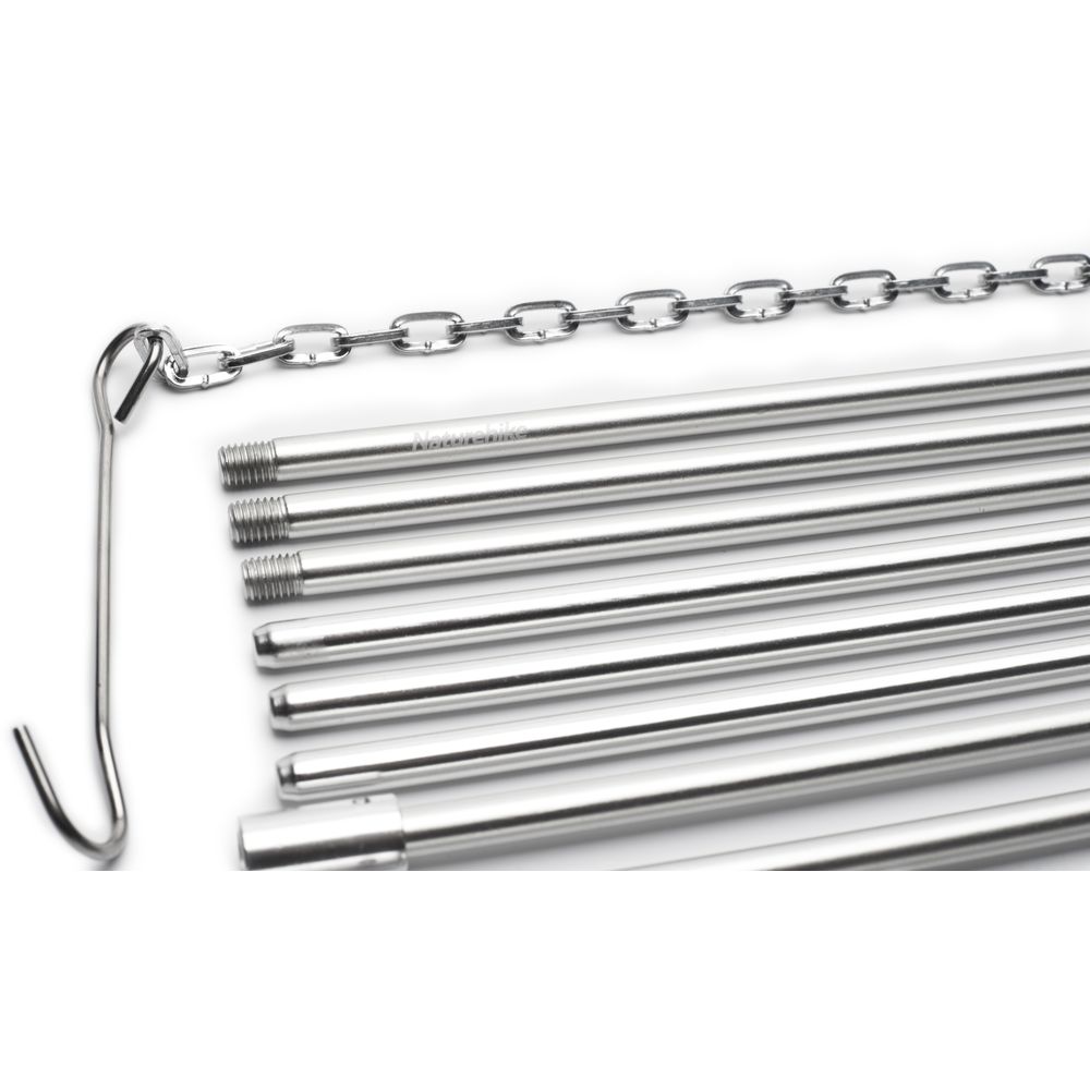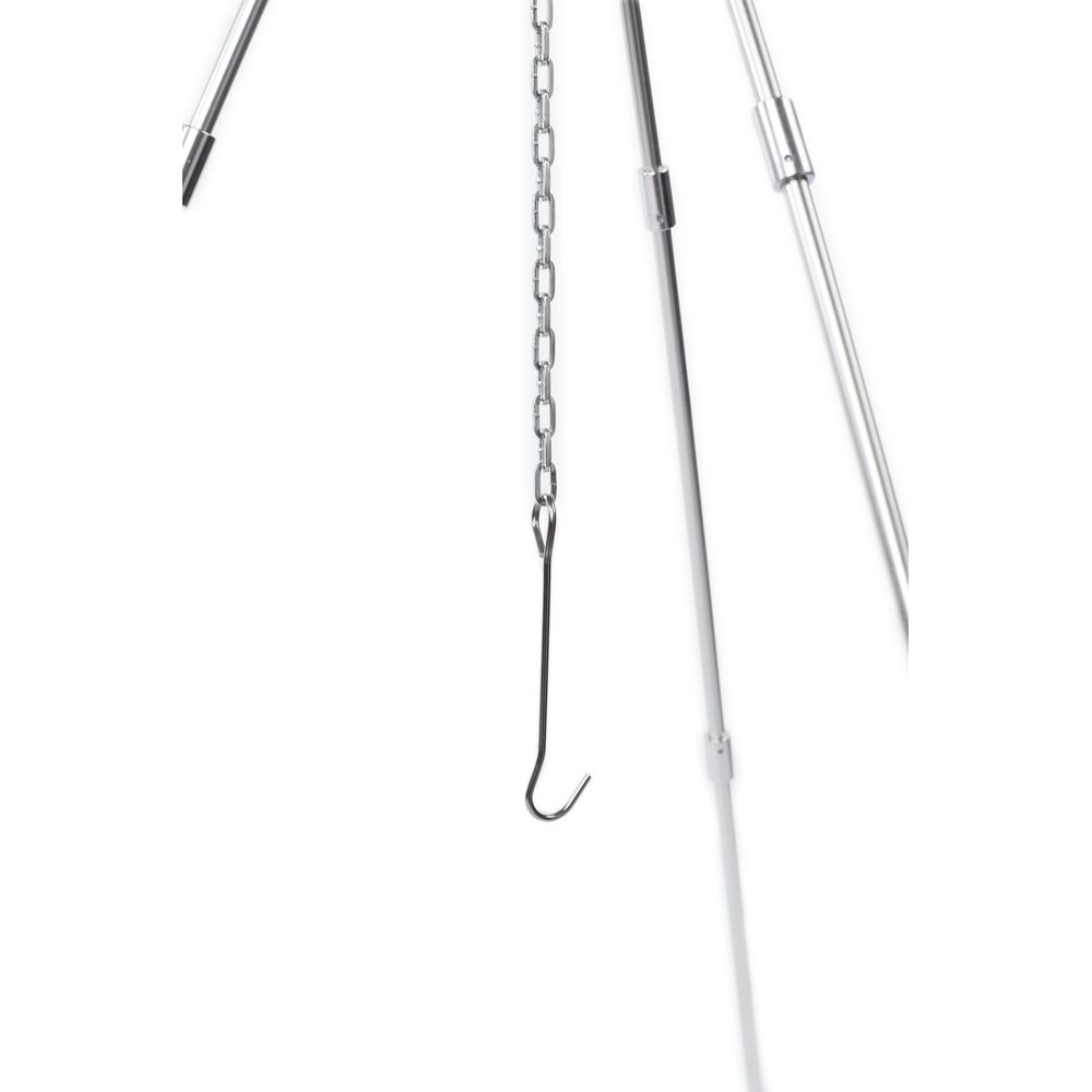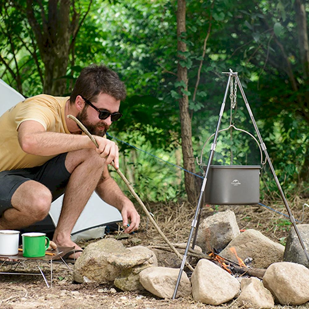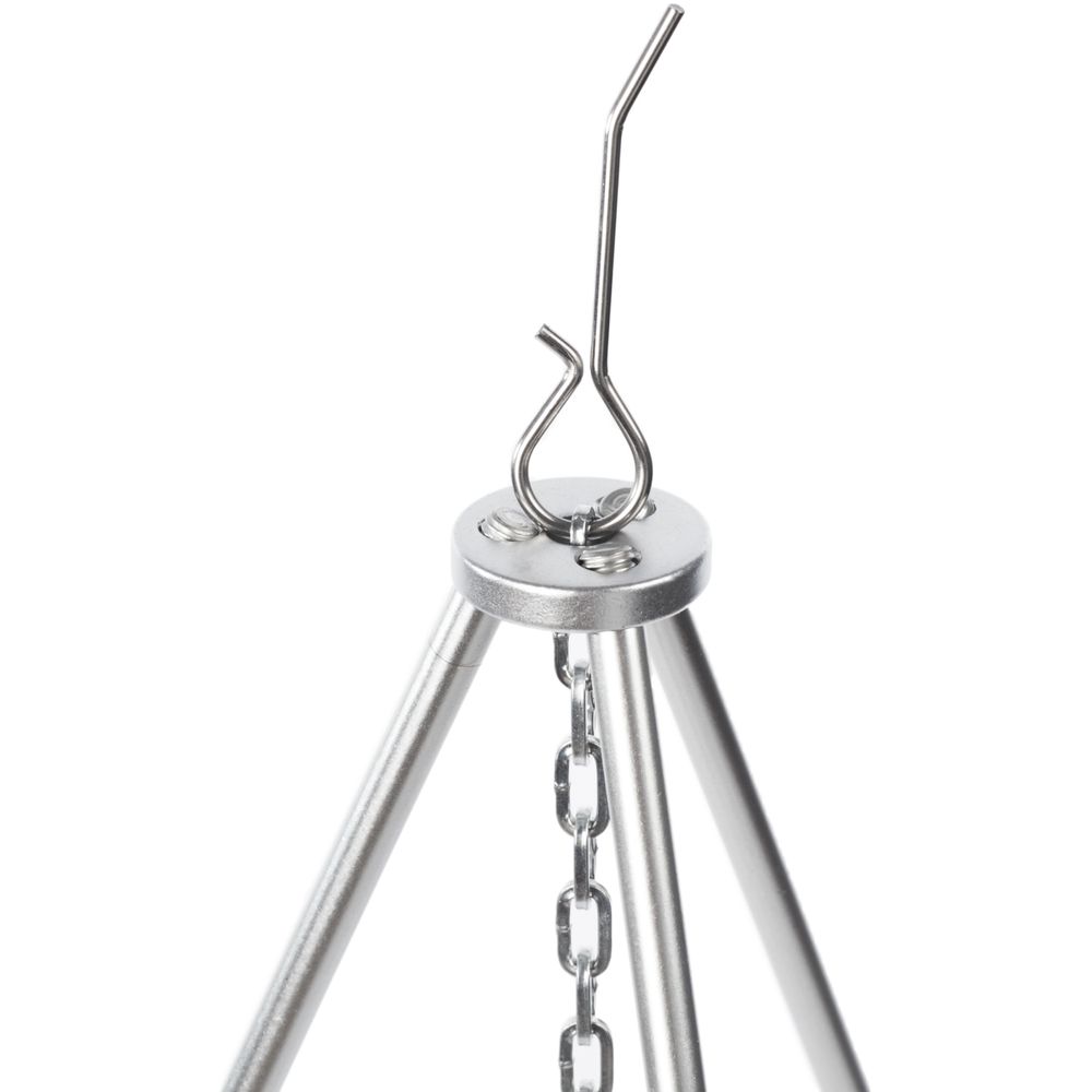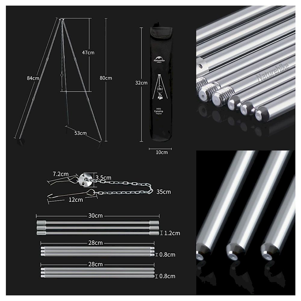 Тринога для котла Naturehike Light tripod silver (NH17S00S-G) - незамінний пристосування для приготування їжі в туристичних походах, на риболовлі та полюванні. Складається з трьох опор, з'єднаних в одній точці зверху, до цієї ж точки приєднаний гак на який підвішується котел, казанок або чайник. Тринога легко розкладається і складається для транспортування є чохол.
