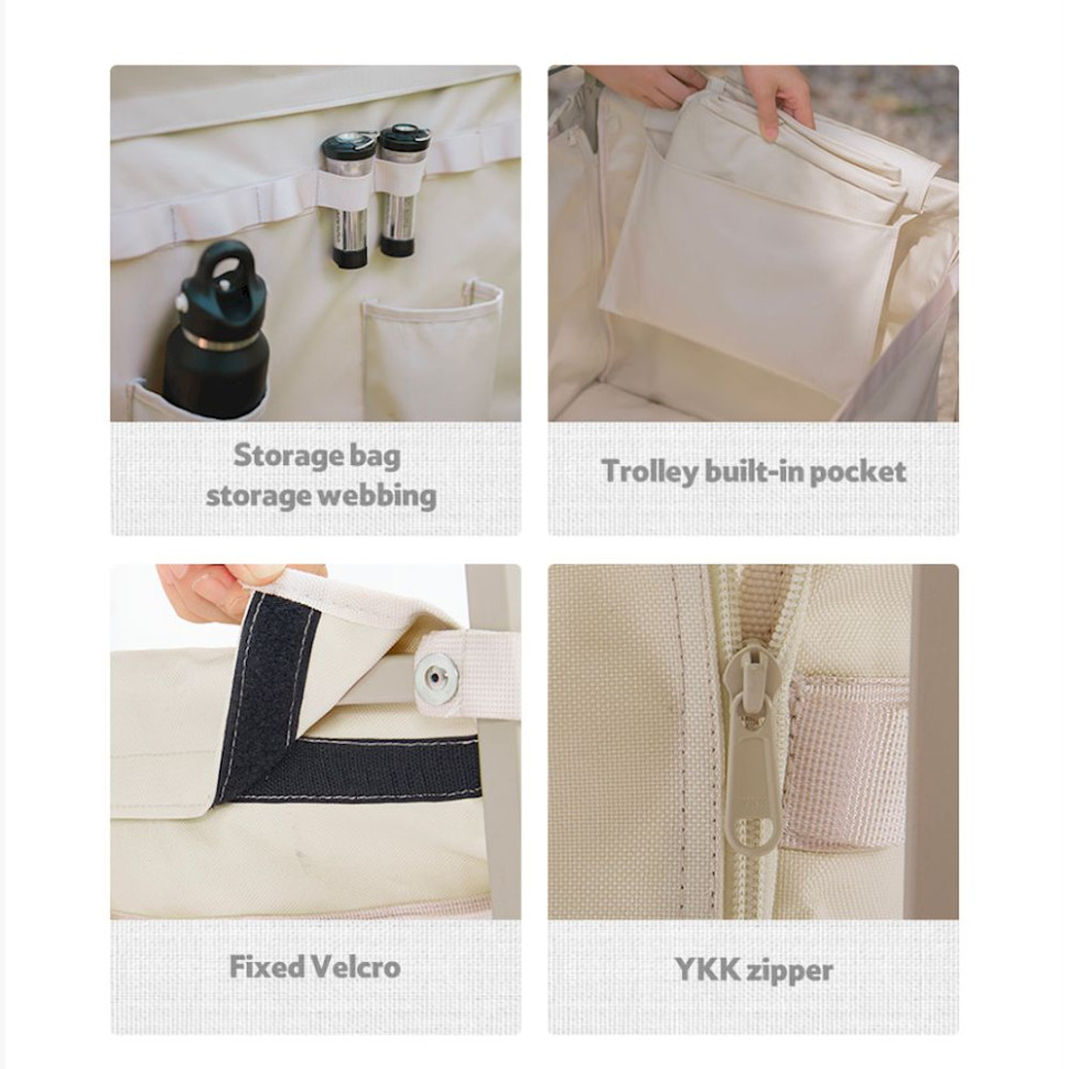 Портативний візочок Naturehike місткістю близько 146 літрів підходить для любителів кемпінгів і пікніків на природі. Завдяки продуманій конструкції модель можна використовувати не тільки як звичайний візок, але й трансформувати в полицю для зберігання речей або мініатюрний столик з поліпропіленовою стільницею (купується окремо).