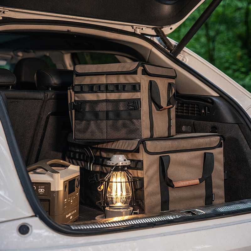 Із зовнішнього боку контейнера є безліч дрібних петель. На них можна закріпити інструменти, ліхтар та інші предмети, які слід тримати під рукою. Зовнішні сітчасті кишені підходять для зберігання смартфона, ключів тощо. Бічна кишеня закривається за допомогою липучки.