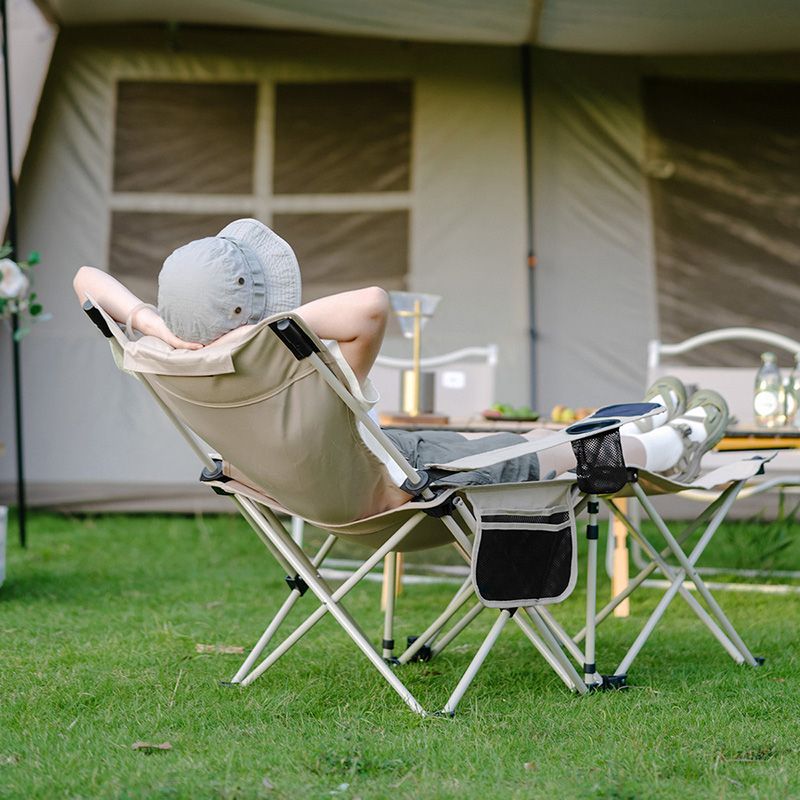 Зручно розташовані кишеньки збоку та в ручці забезпечують простий доступ до вашого улюбленого напою, створюючи затишне місце для насолоди. Голова, виступаючи як подушка, додає зручності, створюючи ідеальні умови для повного розслаблення під час відпочинку на природі.