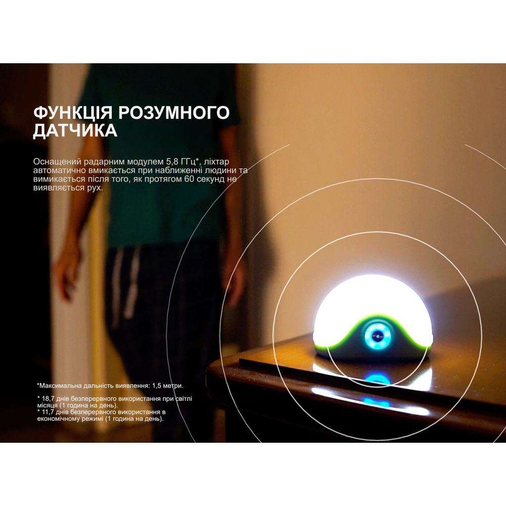 Для створення атмосфери ліхтар пропонує сценічні режими з кольоровим плавним і динамічним RGB-підсвічуванням, а також червоне миготливе / постійне світло. Така різноманітність дозволяє підібрати режим під настрій та завдання — від відпочинку у вечірньому польовому таборі до декоративної ілюмінації на терасі чи в кімнаті.