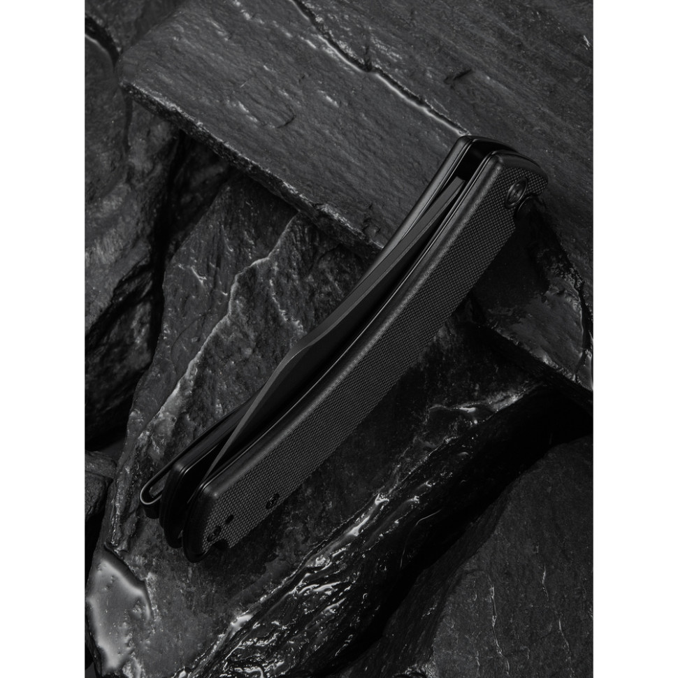 Механіка інструмента налаштована бездоганно. Лезо вилітає миттєво завдяки керамічним підшипникам. Замок Button Lock оснащений спеціальною пружиною, яка створює ідеальний супротив — ніж не відкриється випадково, але при цьому складається одним легким натисканням. Це дозволяє повністю керувати інструментом однією рукою, тримаючи пальці подалі від лінії ходу леза. Для зручності передбачена сталева кліпса, яку можна переставити під ліву або праву руку.