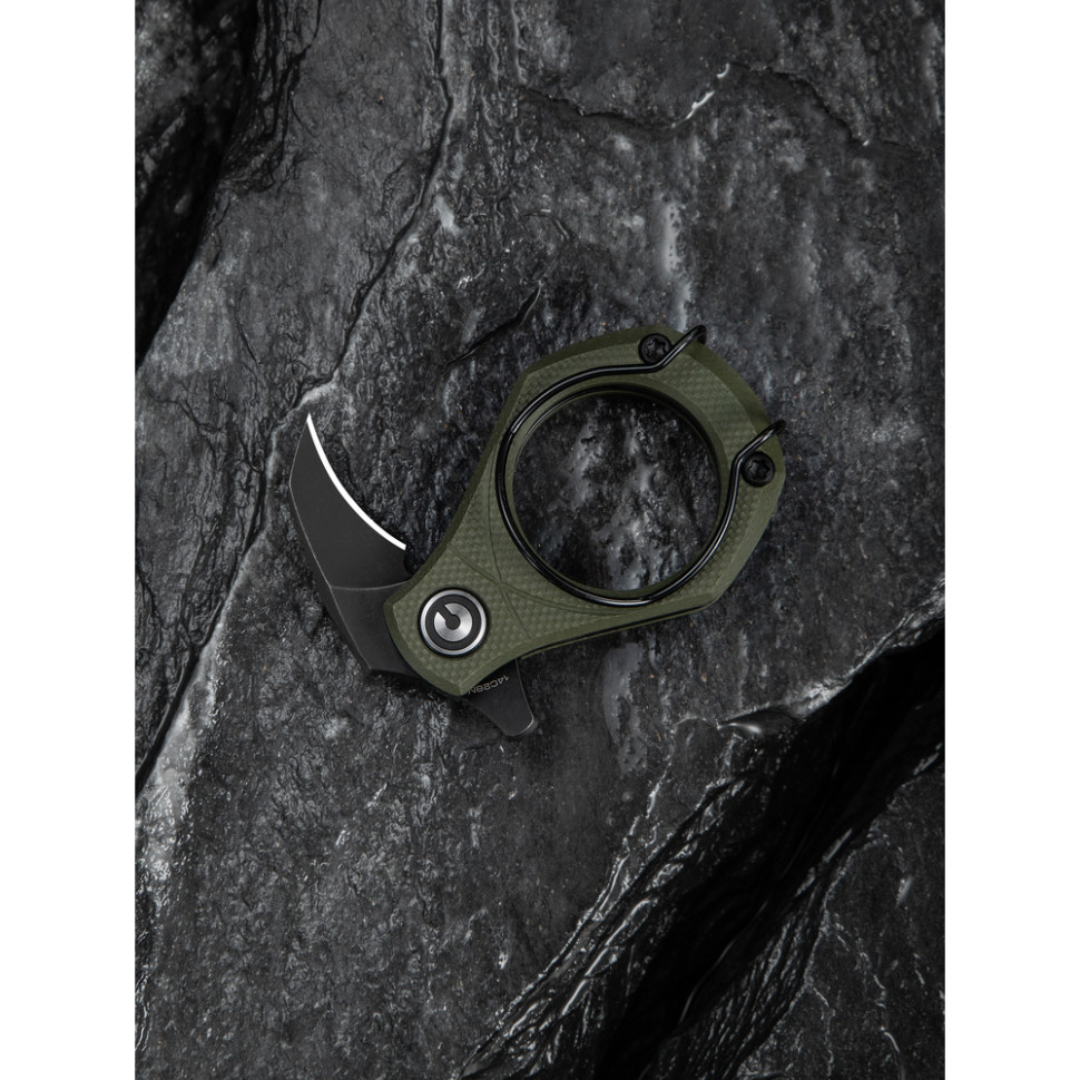 Головна перевага моделі — поєднання мініатюрності та надійності. В основі ножа лежать керамічні шарикопідшипники, які зазвичай ставлять у дорогі повнорозмірні моделі. Завдяки їм лезо виходить миттєво та плавно від легкого натискання на кнопку-повзунок.