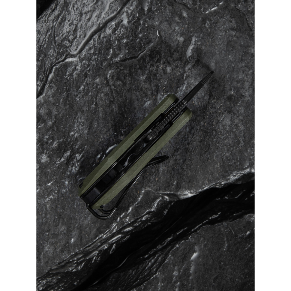 Ніж оснащений повноцінною сталевою кліпсою. Її можна переставити під праву або ліву руку, або ж використовувати ніж як затискач для банкнот. Також у руків’ї передбачено отвір для кріплення на кільце ключей або темляк.