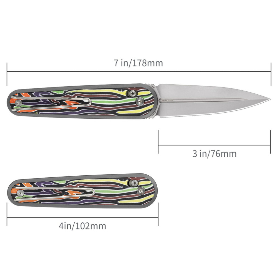 У хвостовій частині встановлено правосторонню кліпсу Tip-Up. З її допомогою можна повністю сховати інструмент у кишені для непомітного носіння.