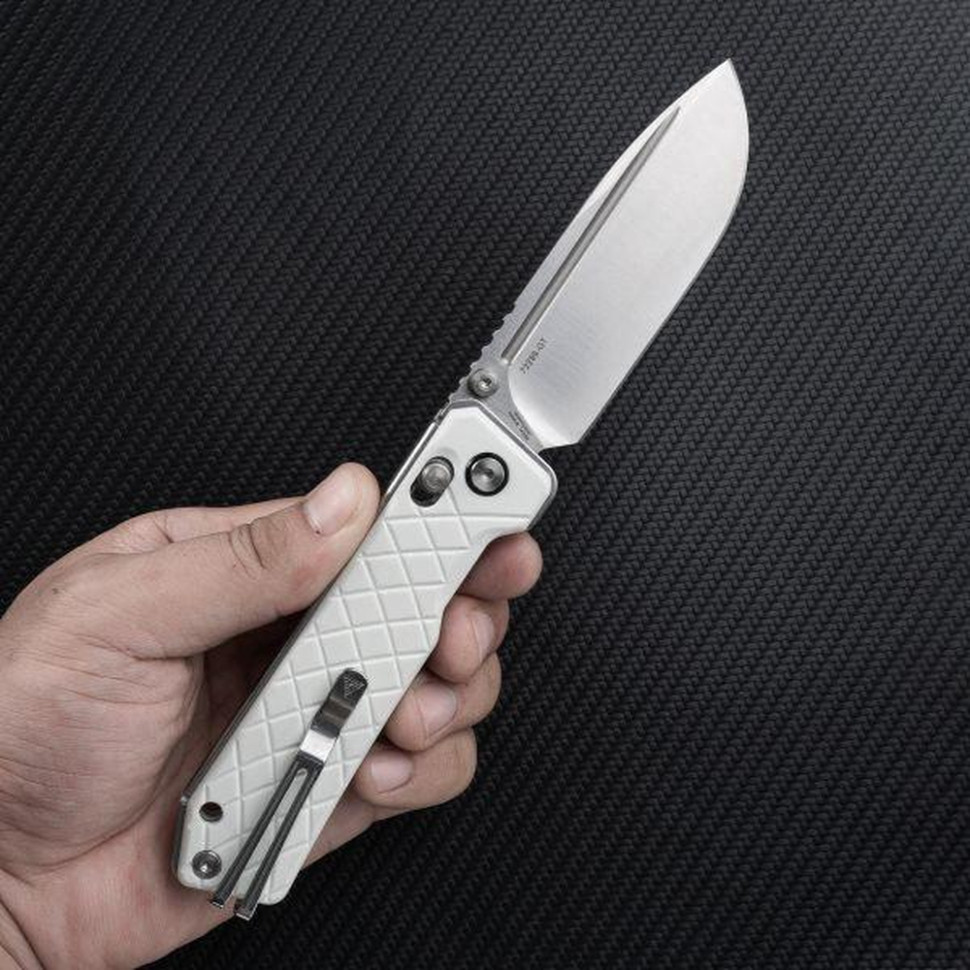 Для носіння на кишені та екіпіруванні передбачено двопозиційну Ambi-кліпсу зі сталі. Затискач можна ставити на будь-який бік руківʼя. Також є отвір для темляка.