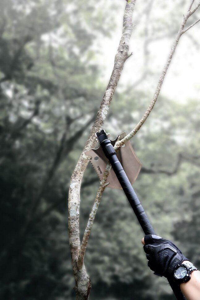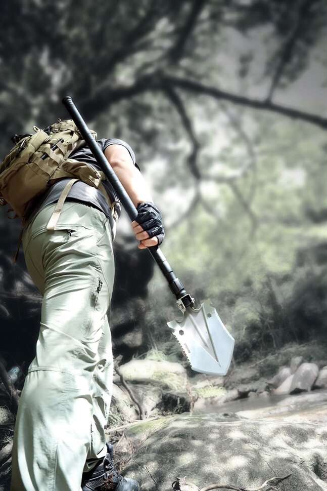 Багатофункціональна лопата – відмінне пристосування для потреб туристів і інших категорій активних осіб. Включає в себе 14 функцій, які згодяться для вирішення найбільш частих і типових завдань. У складі виробу – високоякісні матеріали. Лопаткова головка і рукоятка відповідно виготовлені з антикорозійним мартенситної нержавіючої сталі 20Cr13 і міцного авіаційного алюмінію 6061-T6, що забезпечує довгі роки інтенсивного використання в суворих умовах.