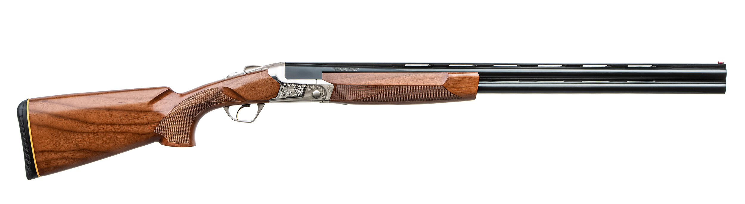 Ружьё оснащено двумя стволами длиной 760 мм, изготовленными из кованой стали 4160 и покрытыми чёрным защитным покрытием, обеспечивающим устойчивость к коррозии и механическим повреждениям. Приклад и цевьё выполнены из натурального ореха с классической древесной текстурой. Приклад оборудован стандартным чёрным затыльником. Спусковой крючок имеет покрытие золотистого цвета, придающее оружию выразительный и элегантный внешний вид. Ствольная коробка украшена декоративным узором, нанесённым методом лазерной гравировки, который подчёркивает классический стиль ружья. Рукоять и цевьё снабжены насечками, обеспечивающими надёжный и уверенный хват.
