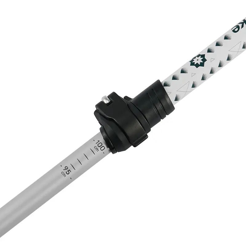 Аксесуари складаються з трьох секцій. Довжину можна регулювати в межах 61.5-135 см і фіксувати за допомогою нейлонових клямок. Для швидкого та зручного виставлення необхідної довжини на поверхню палиць нанесено сантиметрову шкалу.