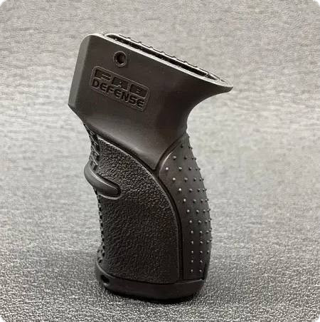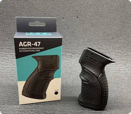 Рукоятка пістолетна FAB Defense AGR прогумована для Сайги, призначена для заміни штатного руків'я. Виготовлена з міцного полімеру, покритого гумою для більшої надійності фіксації зброї. Текстура гумового покриття забезпечує надійність утримання зброї, навіть при несприятливих умовах (дощ, роса і т.д.). Ергономічний дизайн робить поводження зі зброєю більш комфортним і знижує втому в районі кисті стрільця.