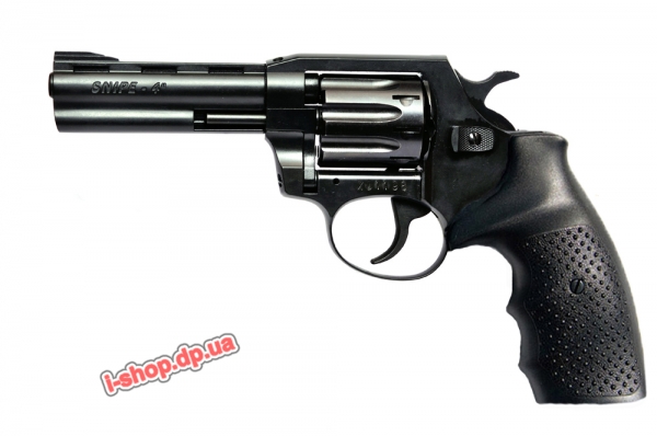 Выстрелы производятся при участии газа, который образовывается при сгорании вещества капсуля патрона. Стрельбу из револьвера обеспечивает 4 мм патрон Флобера, снаряженным свинцовым шариком 0.5 г и пиротехническим зарядом. Зарядка же производится путем откидывания барабана в сторону. Полуавтоматический режим огня дает возможность не перезаряжать SNIPE - 4" резина-металл после каждого выстрела, а лишь нажимать на курок и попадать в цель.
