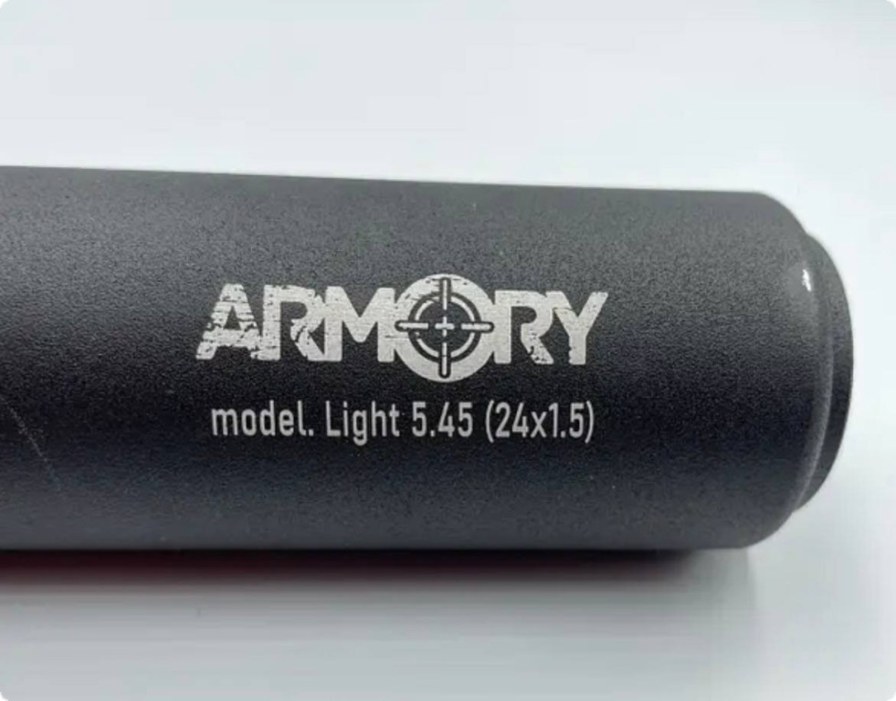 Прилад безшумної стрільби ARMORY Light виконує функцію полум'ягасника і повністю прибирає спалах при пострілі, що особливо важливо в нічний час.