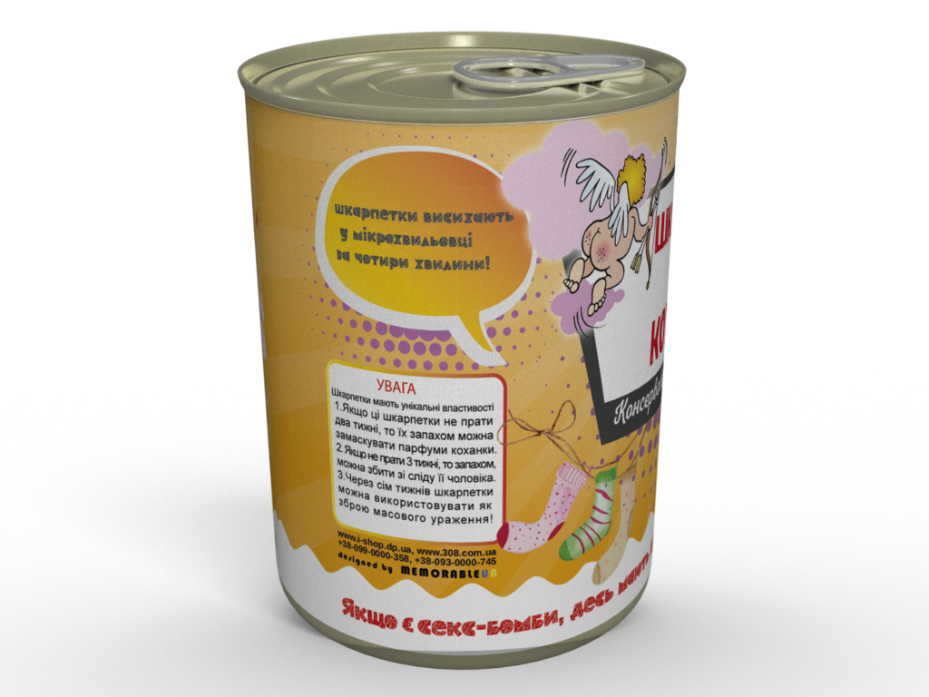 Якщо ви шукаєте оригінальний подарунок своєму коханцю (або чужому), то ви його вже знайшли. Пропонуємо до вашої уваги новинку - Консервовані шкарпетки найкращого Коханця. Такий подарунок буде справжньою несподіванкою! Такий подарунок підійде як для звичайного дня, так і для 14 лютого або на День Народження.