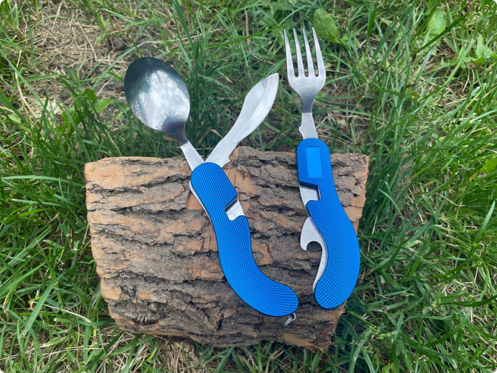 Кишеньковий набір столових приборів, який стане у нагоді в будь-якій ситуації: на роботі, пікніку, полюванні, у поході тощо.